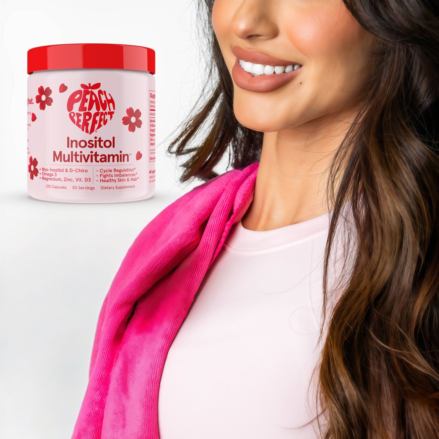 Support your hormones and feel your best with Peach Perfect’s Happy Hormones multivitamin. Formulated with a powerful 40:1 blend of Myo-Inositol and D-Chiro Inositol plus Vitamin D3, Magnesium, Zinc, and Omega-3s, it helps regulate your cycle, improve skin clarity, and support healthy weight management. Backed by real results from hundreds of women, this formula is your daily boost toward balanced hormones and unstoppable confidence.