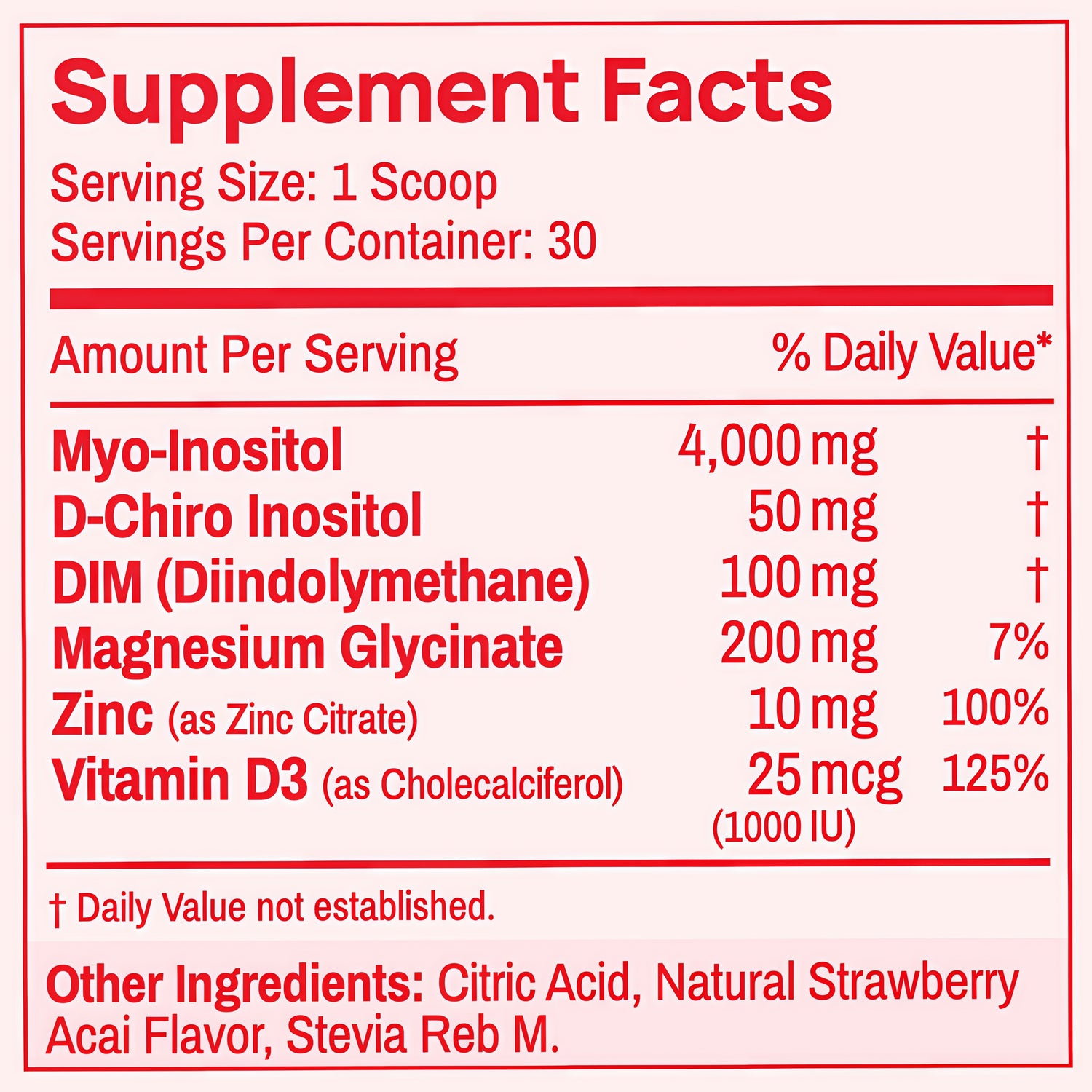 Formulated with a 40:1 blend of Myo-Inositol and D-Chiro Inositol—plus Vitamin D3, Magnesium, Zinc, and Omega-3s—it helps: